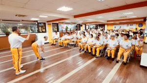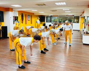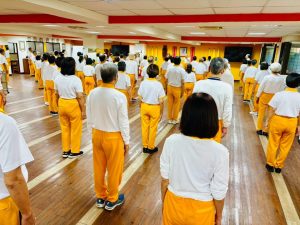 蔡仁陽教練先帶領指導員團煉「鬆筋活骨軟身操」、「漢導引強身功」、「外丹功十二式」。
