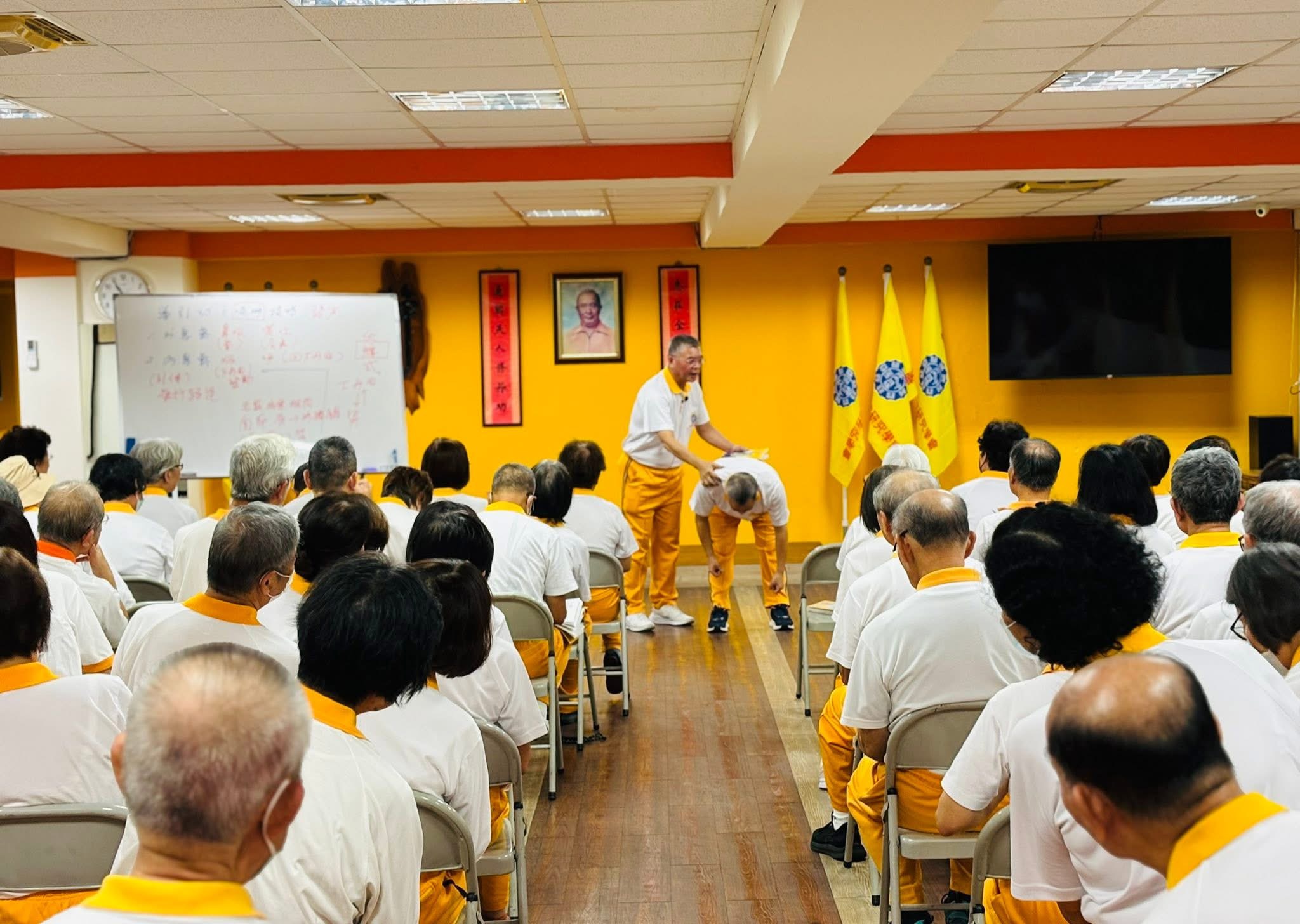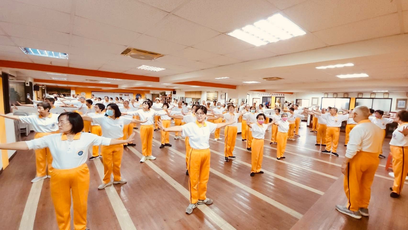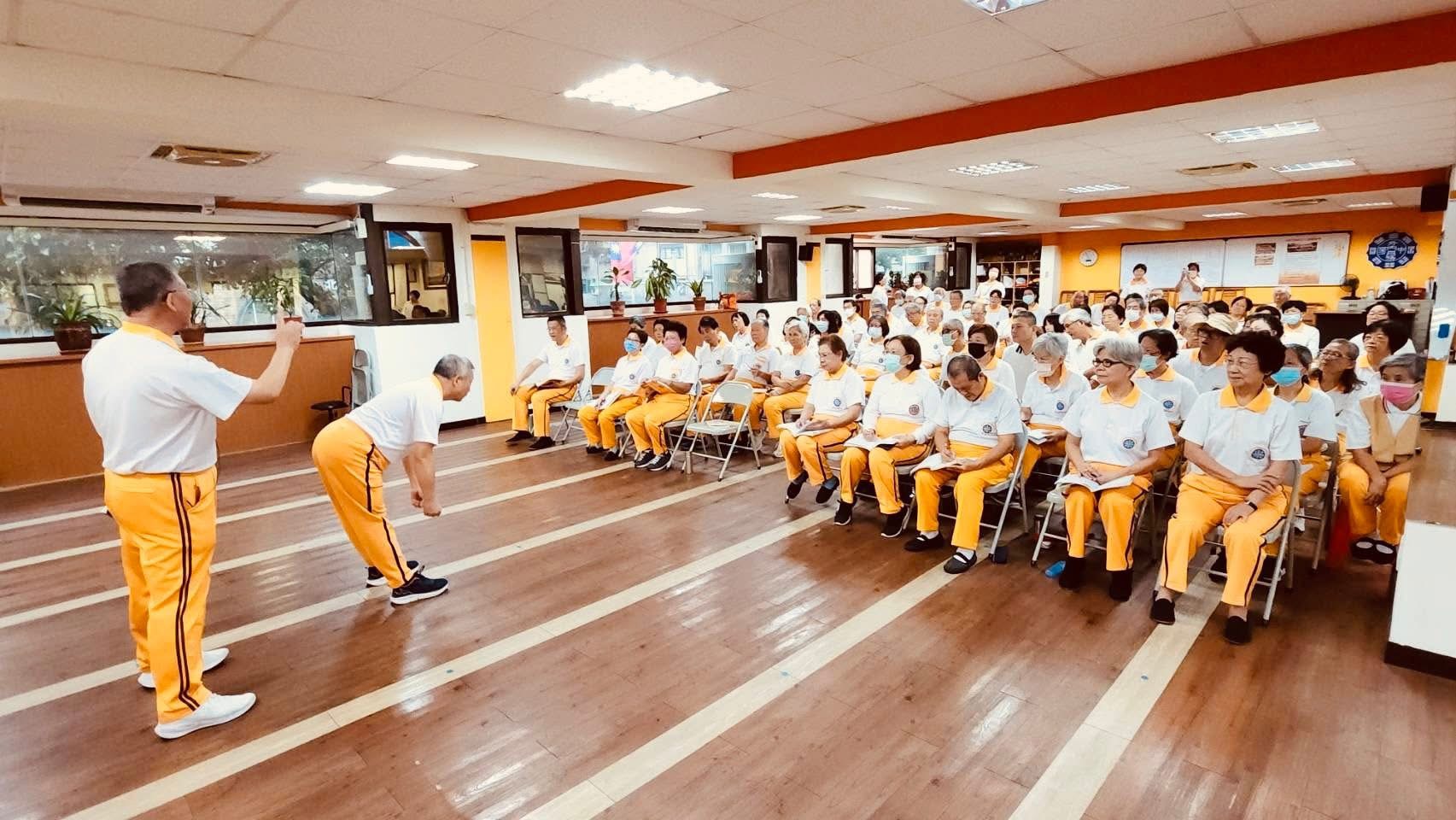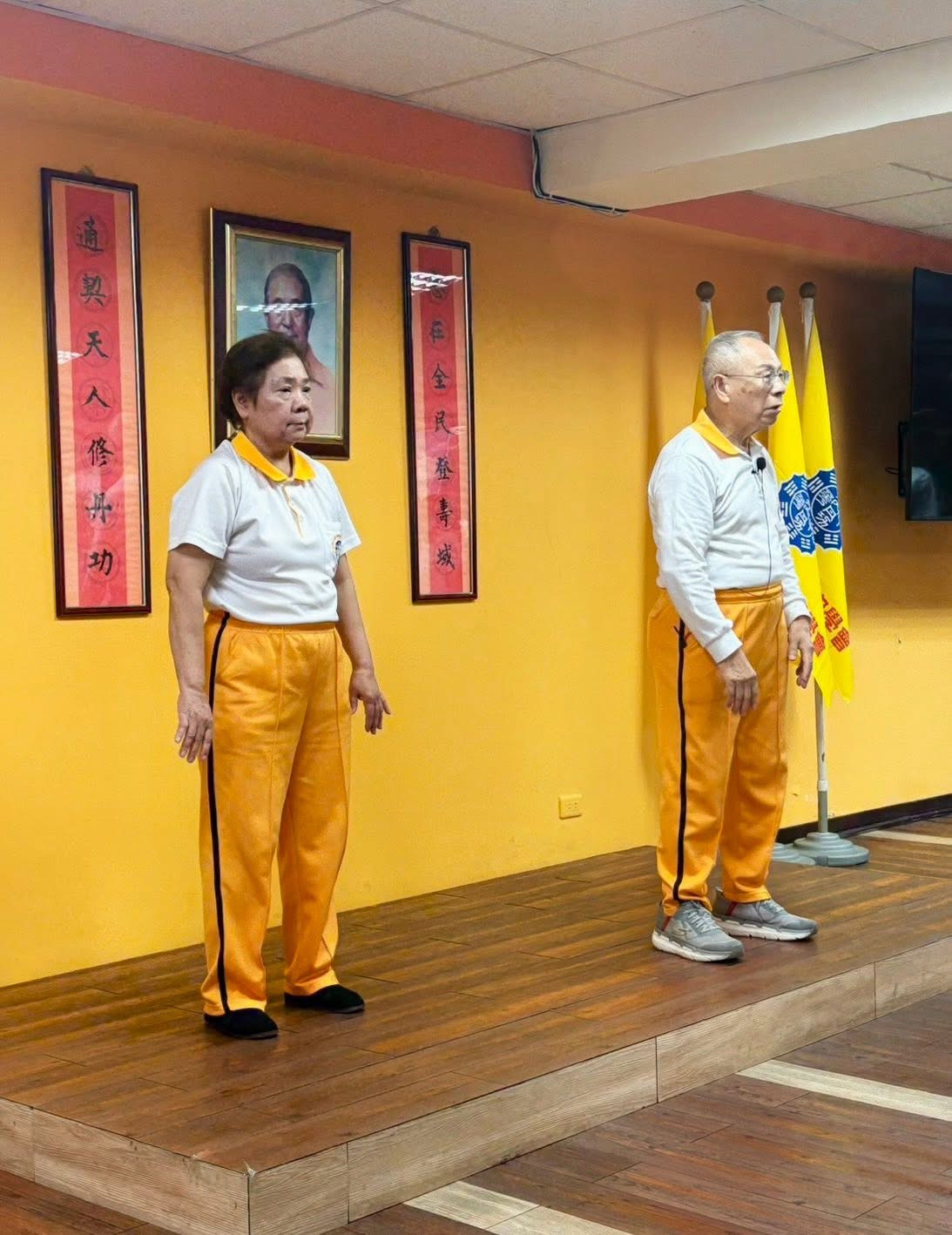 蔡仁陽教練先帶領指導員團煉「鬆筋活骨軟身操」、「漢導引強身功」、「外丹功十二式」。
