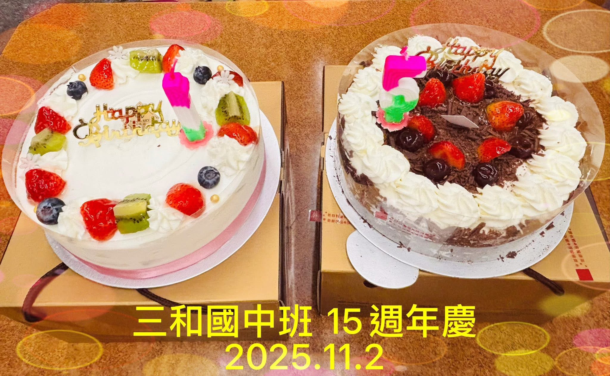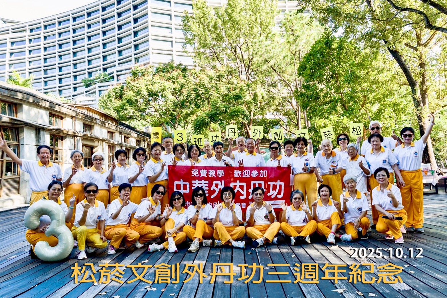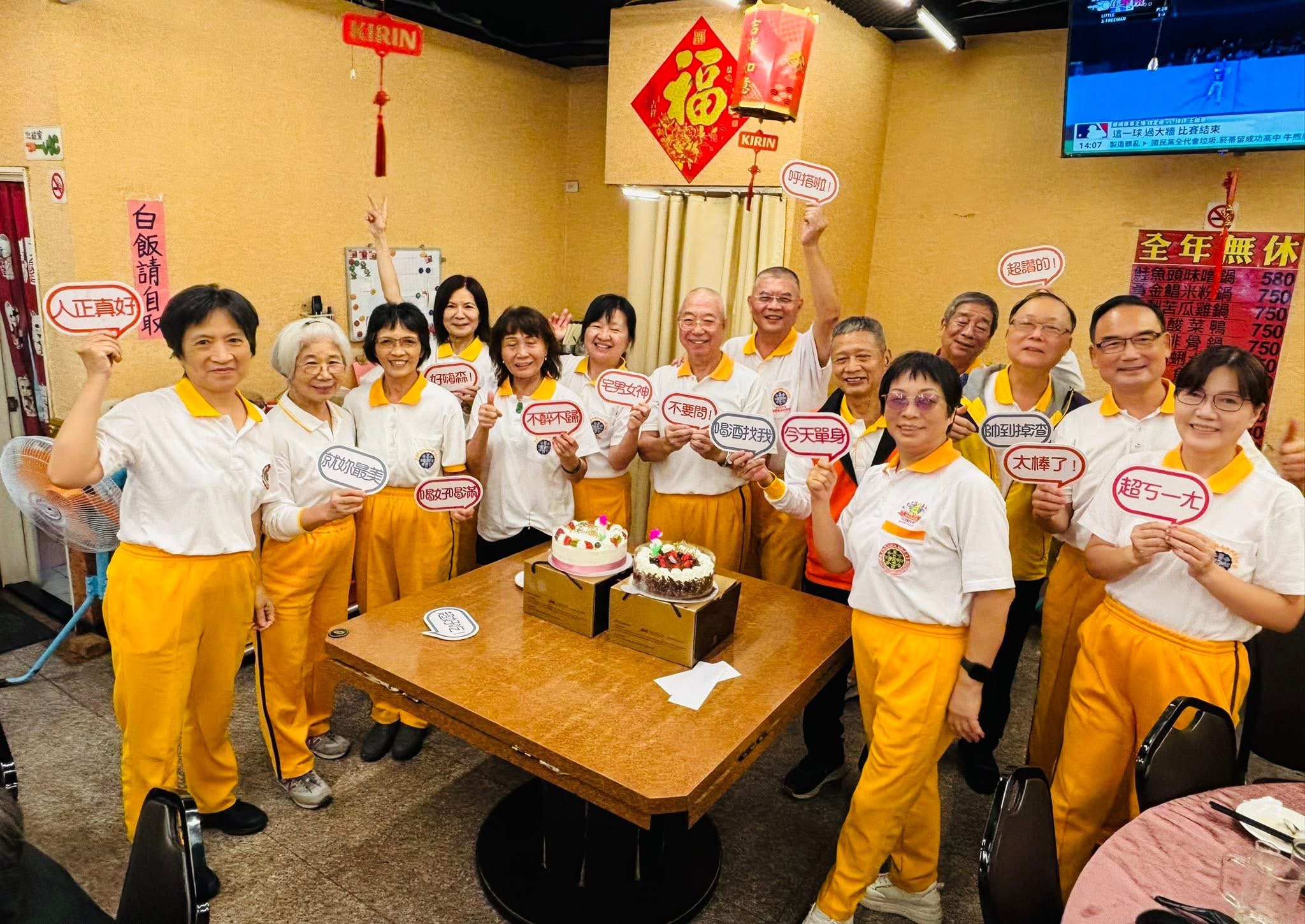 3 11 月, 2025 陳 定沅 0 Comments 2 categories 2025年11月2日 祝賀「三和國中班」慶祝開班15週年,於三重區「饕客棧」餐廳舉辦餐敍活動,並邀請新北市五股區師兄師姐一起共襄盛舉,大家一起吃蛋糕慶祝,歡樂聚會開心愉快! 祝福「三和國中班」週年慶活動圓滿成功,師兄師姐身體健康,幸福美滿! 「三和國中班」: 創班教練:林建廷理事長 現任教練暨場地負責人:葉篤學師兄 練功時間:每天上午5:30~6:45 陳淑慧 文書組長 分享 Category: 有關最近活動之報導, 歷史活動 發佈留言 取消回覆很抱歉,必須登入網站才能發佈留言。 文章導覽 Previous: 2025.11.1十一月份「第三期外丹功指導員教學研習營」 相關文章 台北市外丹功學會113年(2024)下半年度場地巡迴訪視關懷活動 Part 9 2024年9月4日 ... 編輯按鈕 2024.7.21「花蓮縣中華外內丹功運動協會」舉開第七屆第1次會員大會,本會林建廷理事長帶領大家煉功,並進行專題演講。 2024年7月21日... 編輯按鈕 2025.10.12「松菸文創班」舉辦成立三週年(教師節、中秋節、重陽節)四合一慶祝活動,李博嘉副理事長、陳定沅副總幹事、呂超煲理事、張東陽教練受邀參加 2025年10月12... 編輯按鈕 2023年開創的四個新班(關税署海關班、安邦公園班、直潭社區班、中正國小班),迄今已初具成效! 2024年3月23日... 編輯按鈕 2023.12.17本會 「寶清公園班」舉辦「創班32周年紀念餐敍大會」,恭賀活動圓滿成功! 2023年12月17... 編輯按鈕 台北市中華外內丹功研究學會於7月28 、29、30日三天舉辦「 112年度外丹功新進指導員培訓班」—研習課程主題(7)篇 2023年8月1日 ... 編輯按鈕