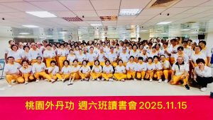 16 11 月, 2025 陳 定沅 0 Comments 2 categories 2025年11月15日 「桃園市中華外內丹功運動協會」週六讀書會班舉辦精進研習活動,邀請本會林建廷理事長擔任專題講座教練,「解析張大師親自示範影片之煉功訣竅」,活動過程圓滿成功! 地點:桃園外丹功會舘 參與人數:130人 陳淑慧 文書組長 分享 Category: 丹功觀摩研習, 歷史活動 發佈留言 取消回覆很抱歉,必須登入網站才能發佈留言。 文章導覽 Previous: 2025.11.9本會林建廷理事長、名譽理事長黃錫堯師兄、常務理事曹麗雪師姐及文書組長陳淑慧師姐代表參加「南投市中華外內丹功運動學會」114年會員大會Next: 2025.11.16本會由李博嘉副理事長及林麗惠總幹事及曾白虹理事代表參加「嘉義市中華外內丹功研究學會」第十一屆第四次會員大會 相關文章 2024.8.30本會「關務署海關班」歡慶創班1周年生日快樂 2024年8月30日... 編輯按鈕 台北市中華外內丹功研究學會於7月28 、29、30日三天舉辦「 112年度外丹功新進指導員培訓班」—研習課程主題 (2) 篇 2023年7月30日... 編輯按鈕 2023.6.11 「112年度會員餐敍活動暨第九屆理監事、會務幹部授證典禮」~丹功示範表演~ 2023年6月11日... 編輯按鈕 2023.4.23-24本會名譽理事長李銘輝師兄受邀主持馬來西亞外丹功總會主催之北馬區集訓營並參加近打區會主辦之丹功交流活動 2023年4月23-... 編輯按鈕 台北市外丹功學會于天母活動中心舉辦指導員團煉活動2020/01/05 2020.1.5台北... 編輯按鈕 台北市中華外內丹功研究學會於8月11、12、13日三天,舉辦「 2023年外丹功國際班指導員研習營」~捐贈儀式篇 2023年8月13日... 編輯按鈕